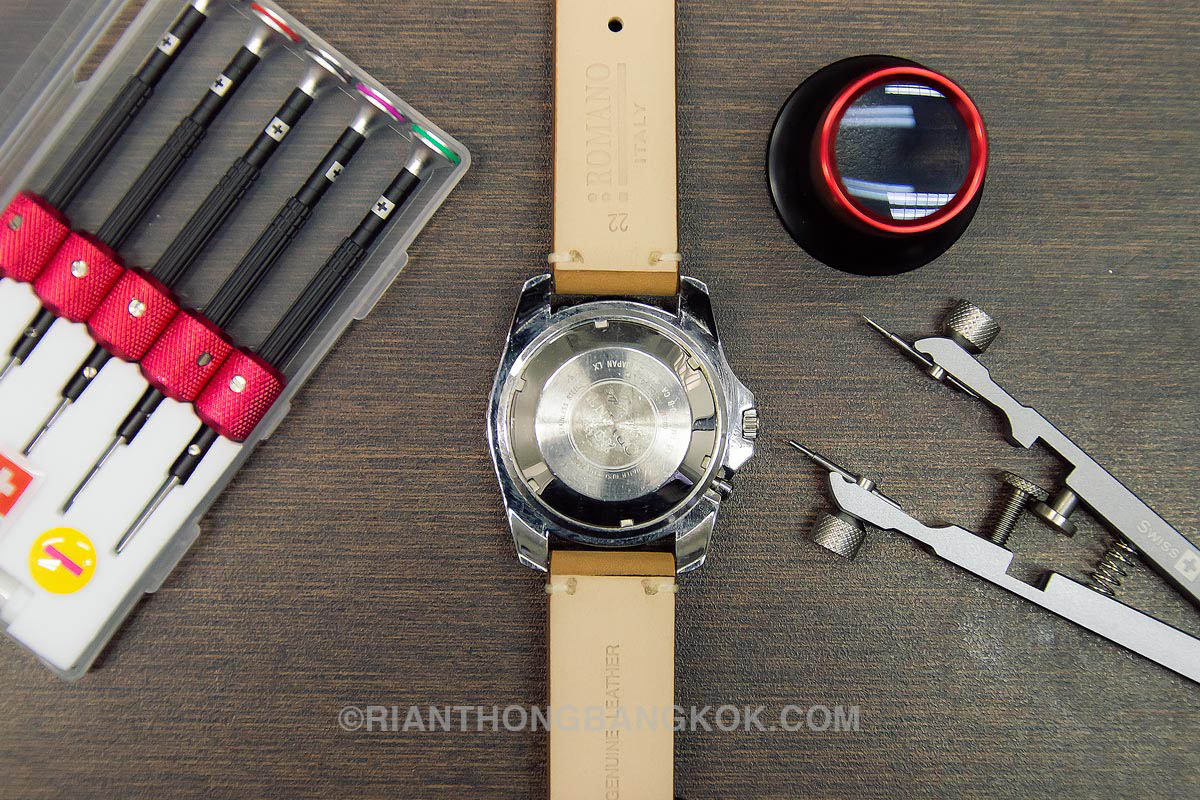 ภาพนาฬิกาเตรียมการซ่อมและอุปกรณ์ต่าง ๆ รวมถึงกล้องขยาย Horotec
